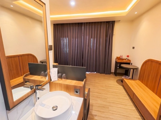 採現代化設計風格全新打造的水上別墅,臥室與衛浴空間規劃完善,提供旅客舒適自在的住宿體驗。