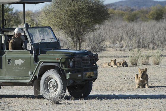 午後至黃昏時段的導覽獵遊活動,於私人擁有的 Ongava 野生動物保護區內進行。此保護區以穩定且可觀的犀牛族群聞名,同時亦棲息著獅群及多樣大型草食動物,包括各類羚羊;其中更可見納米比亞特有物種——黑臉黑斑羚,極具生態價值與觀賞意義。