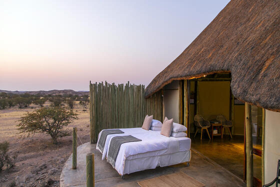 位於達馬拉蘭 Doro Nawas Conservancy,俯瞰 Huab 河谷與 Etendeka 山脈壯闊地景,展現納米比亞西北最原始的荒野風貌。營地設有約16間架高帳篷客房,附獨立衛浴,並可將床鋪移至露台,在無光害環境下仰望滿天星斗。活動以自然導覽、地質景觀與在地文化交流為主,節奏緩慢而深刻,強調永續理念與社區共生,適合追求靜謐與深度體驗的旅客。