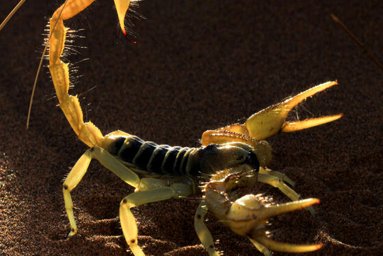 夜幕低垂後,納米布沙漠彷彿甦醒於另一個神秘的世界。夜間步行探索將帶領旅人發現那些令人著迷的沙漠生靈,例如在紫外線燈照射下會綻放螢光的蠍子,閃耀出幽微而奇幻的光芒。