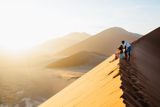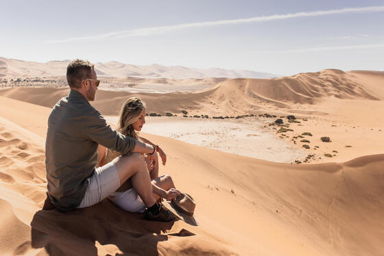 深入納米比沙漠核心索蘇斯維雷,欣賞世界上最高且最古老的沙丘之一,以及死亡谷中枯木與白色鹽地交織的經典景觀。旅客可攀登沙丘俯瞰遼闊沙海,或以不同方式探索沙漠地形,如騎行穿越沙丘地帶,亦可選擇自費搭乘熱氣球,從空中俯瞰壯闊且層次分明的沙漠紋理。