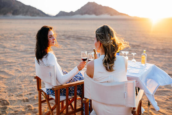 在這片看似荒蕪的沙漠中,依然孕育著豐富的生命,包括劍羚、跳羚、鴕鳥,以及多種適應極端環境生存的爬蟲類。旅客可攀登著名的 Big Daddy 沙丘,從高處俯瞰無垠沙海;漫步於死亡谷,在潔白的鹽與黏土盆地上,佇立著歷經數百年風霜的枯木,形成極具張力的超現實畫面;或選擇更為尊榮的體驗,搭乘景觀飛行或熱氣球自空中欣賞沙丘全景,並於廣袤天地之間享用一場難得一遇的香檳早餐,為旅程留下深刻而獨特的記憶。