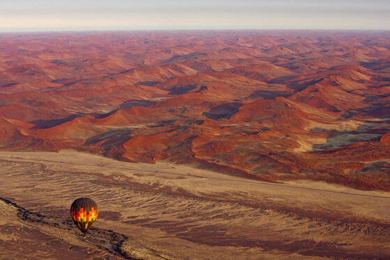 納米布沙漠熱氣球飛行體驗 Hot Air Balloon Excursion:在庫拉拉荒野保護區的熱氣球體驗,是一場無與倫比的空中盛宴,您將靜靜翱翔於索蘇斯維雷壯麗遼闊的沙海之上,俯瞰連綿起伏的赤紅沙丘;降落後,更可於沙漠腹地享用香檳早餐,為這段夢幻旅程劃下優雅句點。