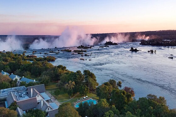 Royal Livingstone by Anantara 座落於贊比西河畔,緊鄰維多利亞瀑布邊緣。建築本身完美還原了 19 世紀探險時代的優雅氛圍,長長的木造長廊、精緻的下午茶服務以及充滿故事感的復古內飾,讓人彷彿穿越回李文斯頓初見瀑布的輝煌年代。這裡最令人驚嘆的是與野生動物的共生之美。在飯店靜謐的草坪上,旅客有機會能見到斑馬與長頸鹿悠閒散步,或是河馬在不遠處的河面噴氣。當日落餘暉染紅河面,在飯店品飲一杯冰鎮調酒,遠眺不遠處升騰而起的「雷鳴之煙」,都是一種難得的體驗。