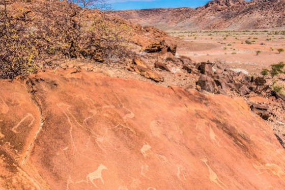 造訪已經被列為已被列為世界文化遺產的古老桑人(San)岩畫與岩刻遺址、石化森林(Petrified Forest)、燃山(Burnt Mountain)與管風琴岩(Organ Pipes)等自然奇景;這些罕見而壯觀的地質現象,共同構成納米比亞最令人驚嘆的自然與文化景觀之一。